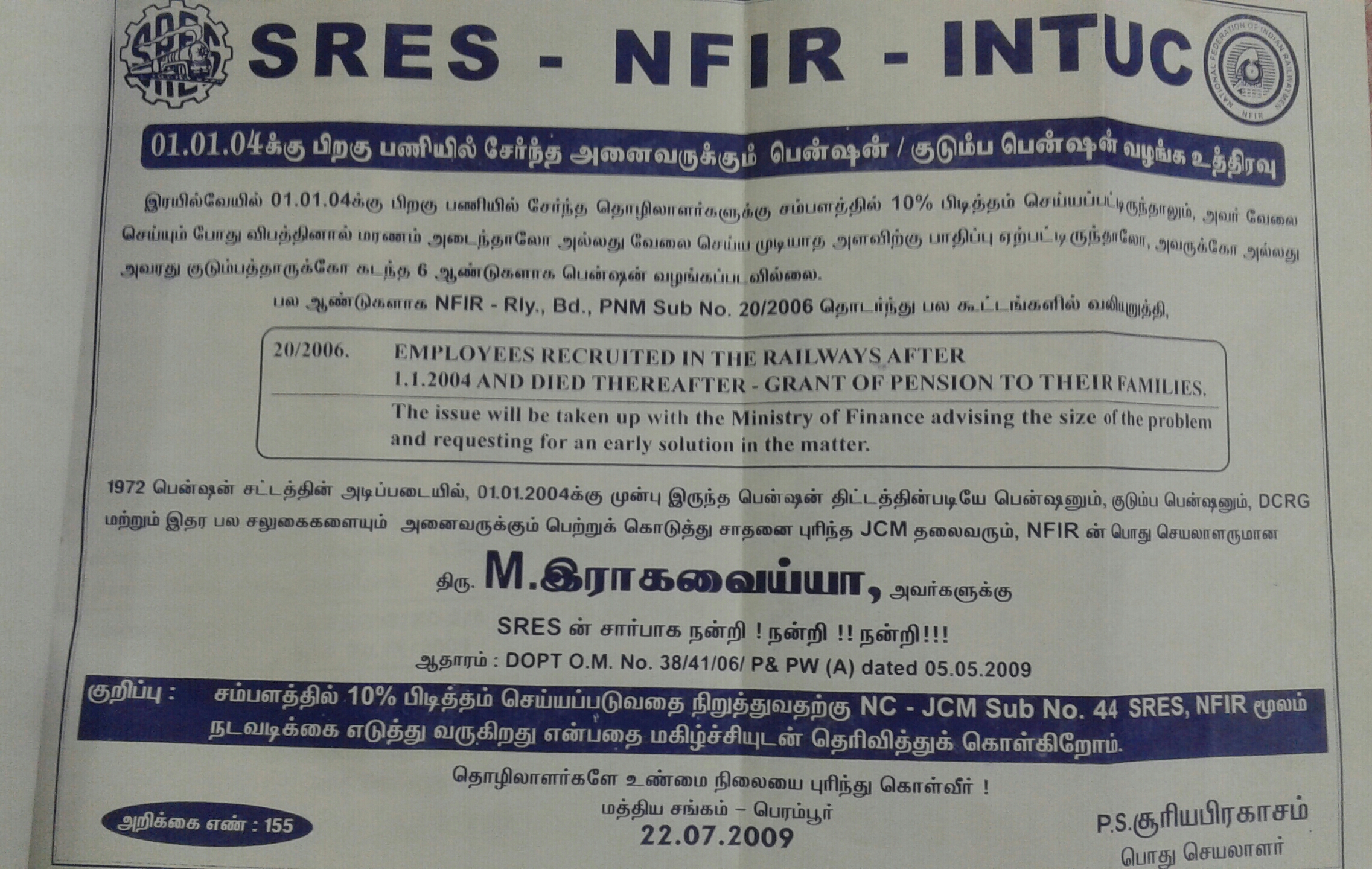 EMPLOYEES RECRUITED IN THE RAILWAYS AFTER 1.1.2004 AND DIED THERE AFTER - GRANT OF PENSION TO THEIR FAMILIES |