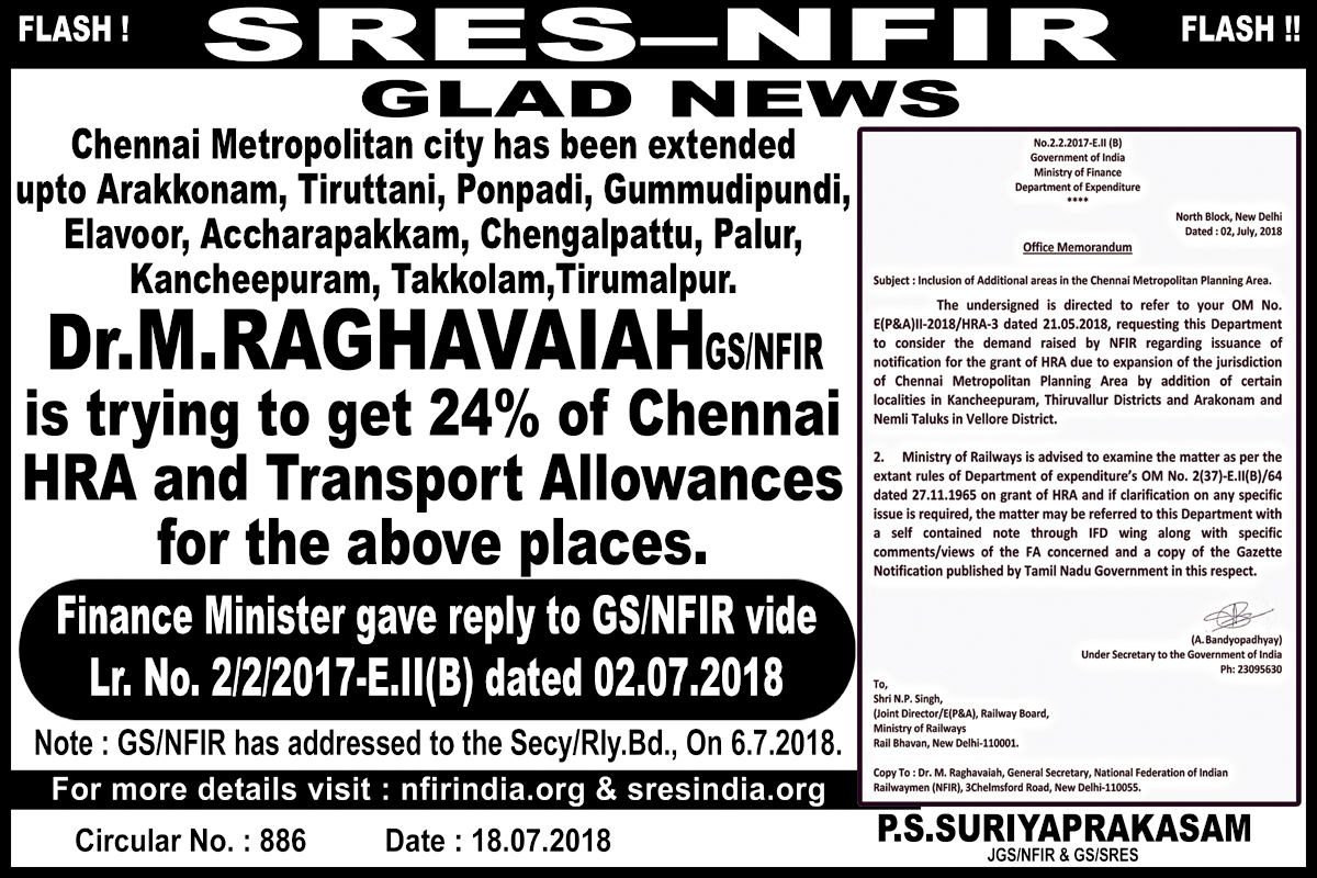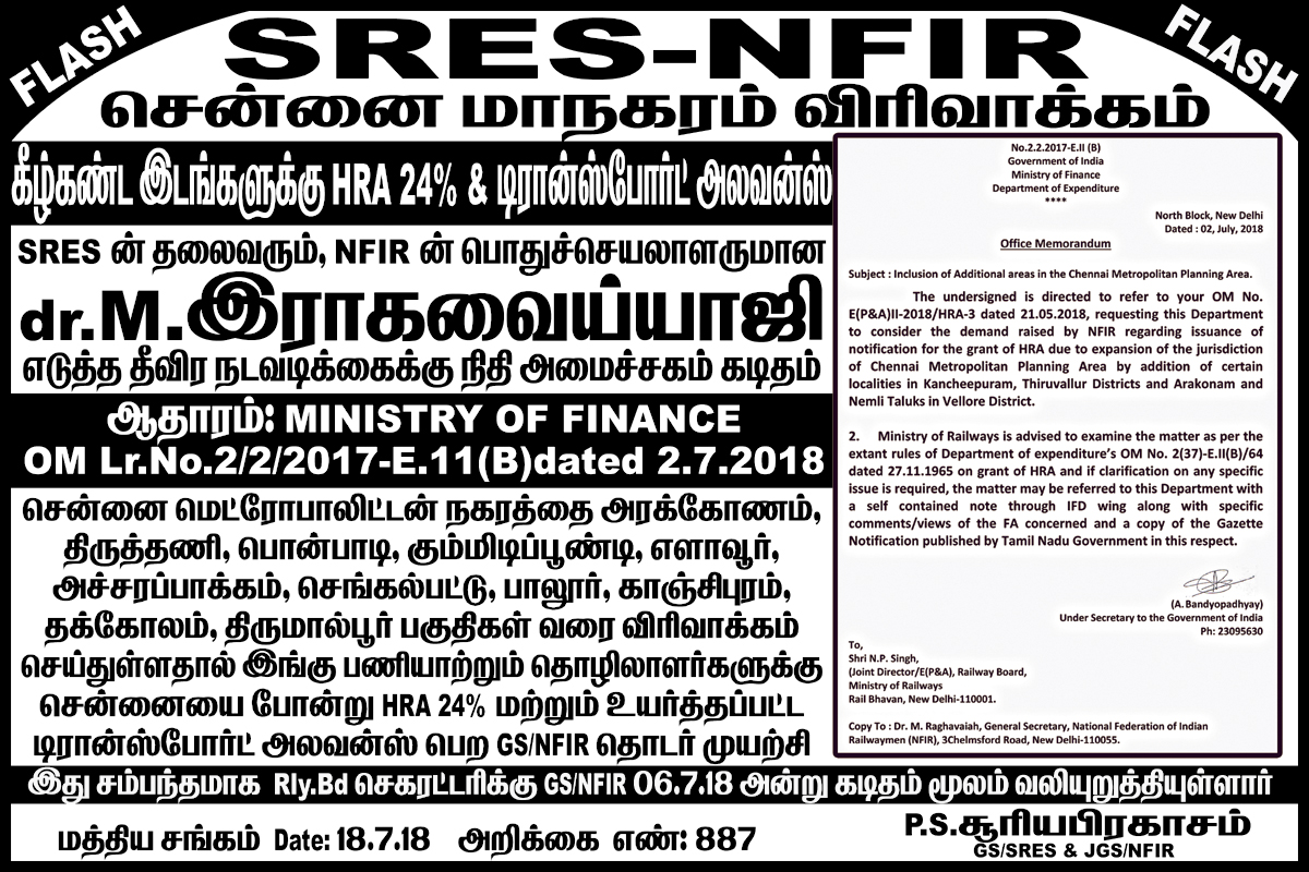 24% HRA and Transport allowance to Chennai Metropolitan city (English Poster) |