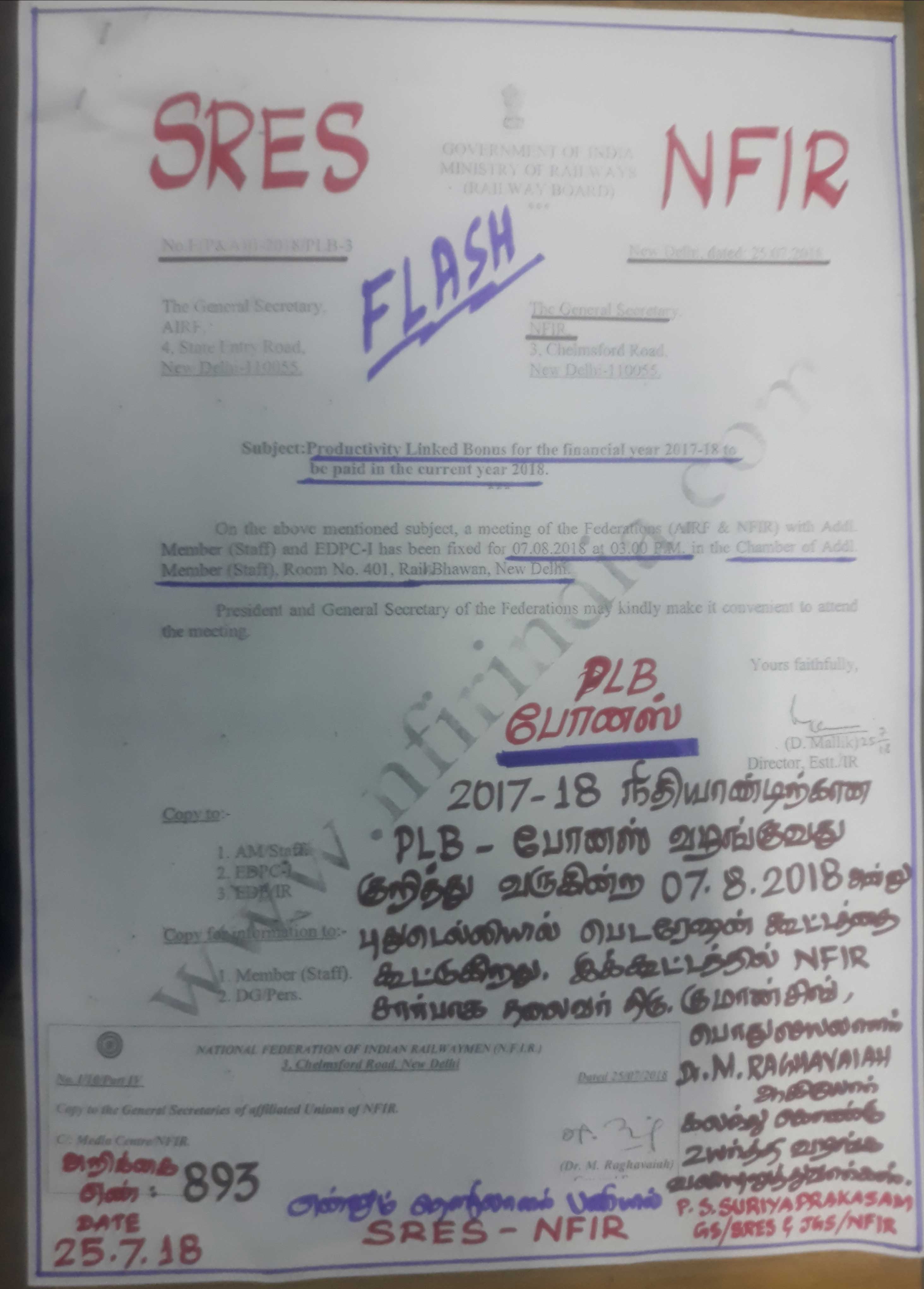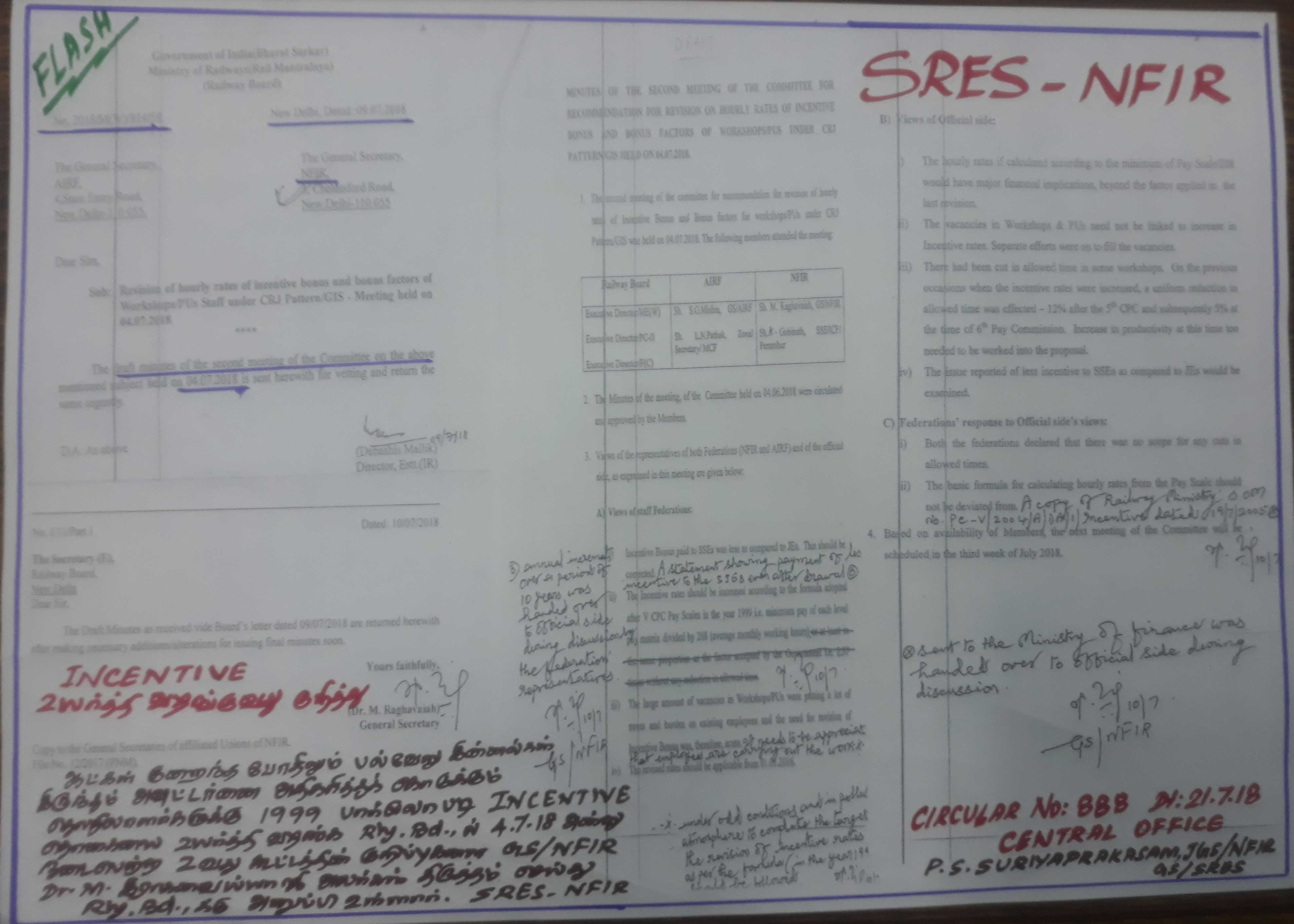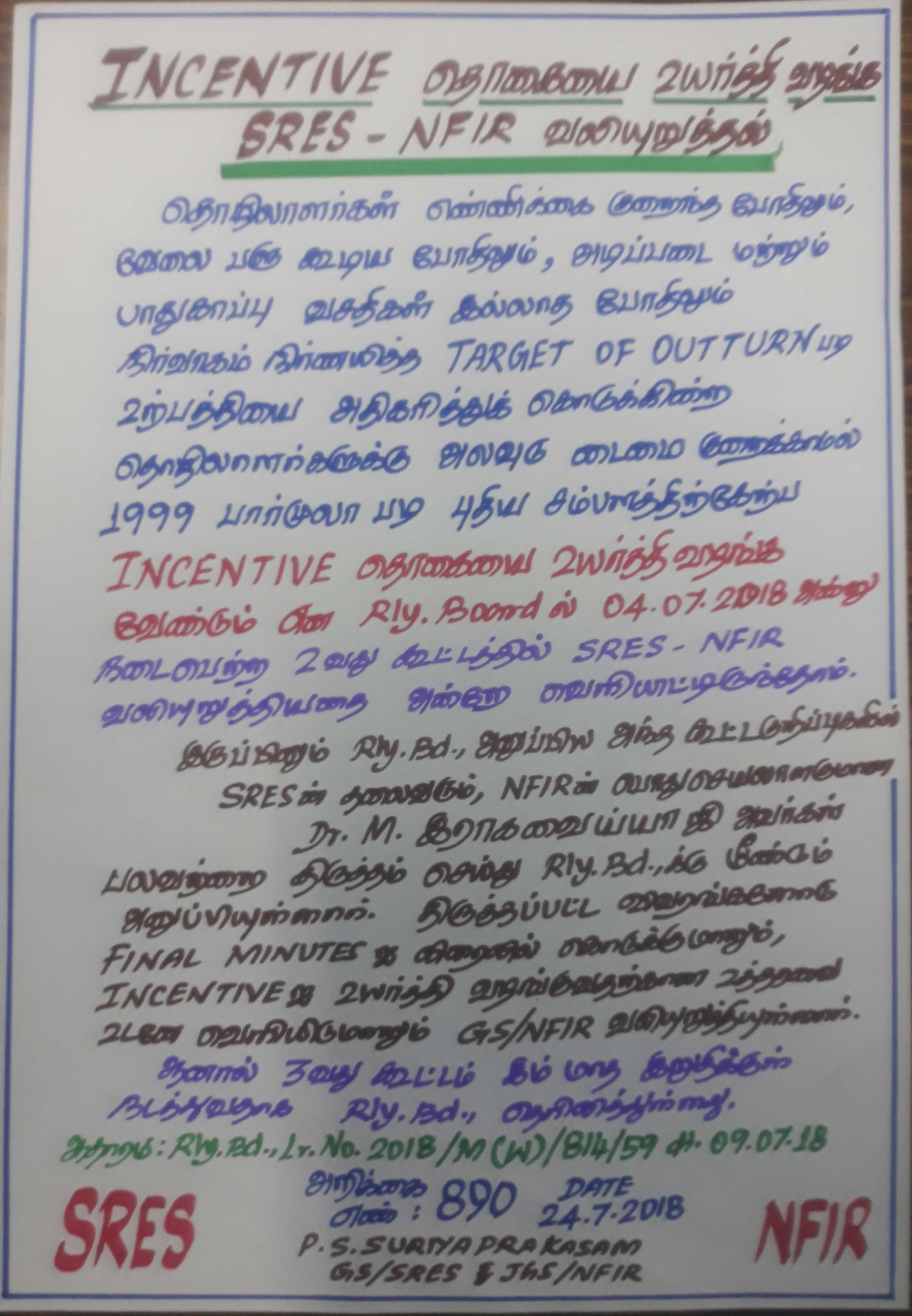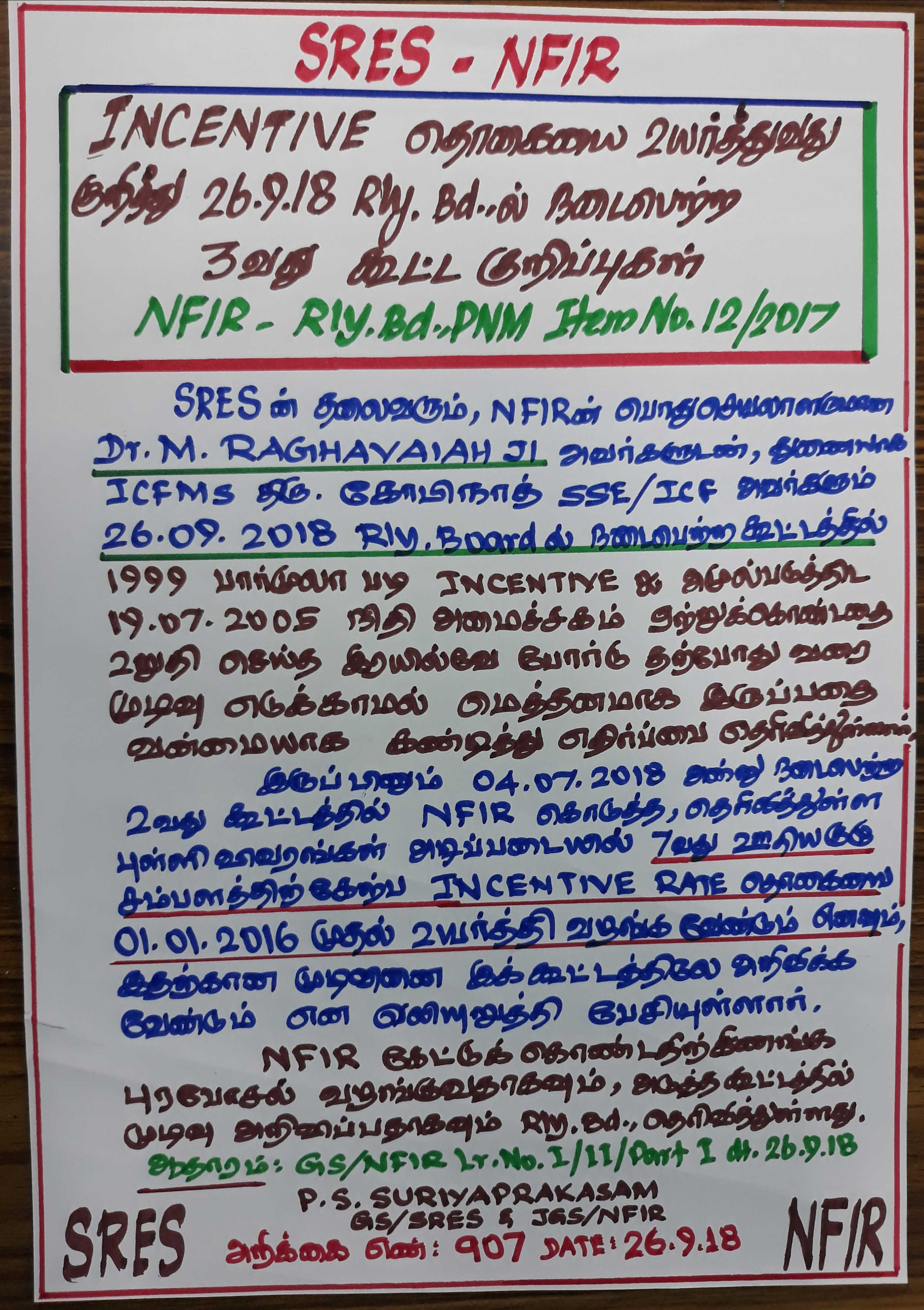 Meeting with Rly Board regarding Incentive Rates to be increased from 01.01.2016 (Tamil) |
