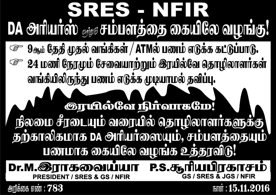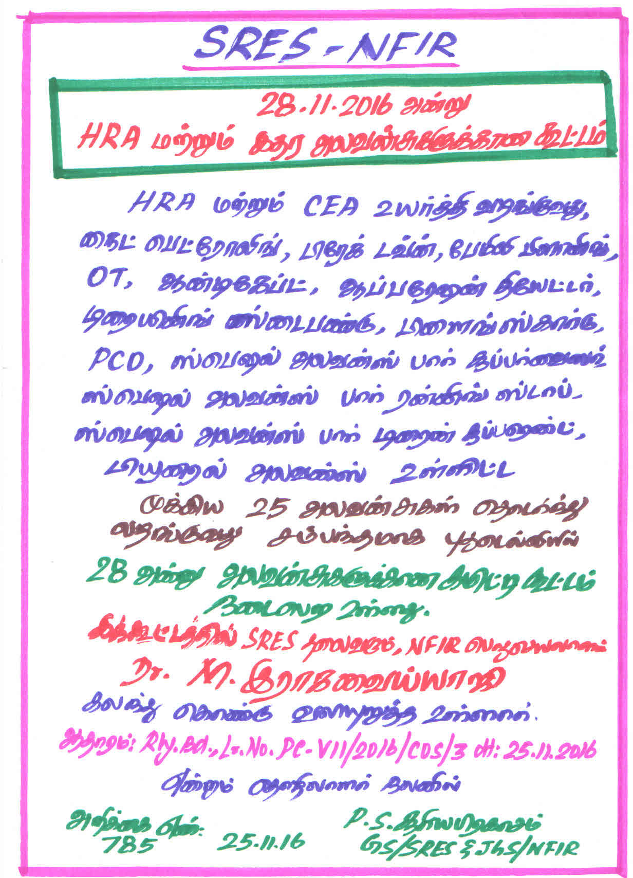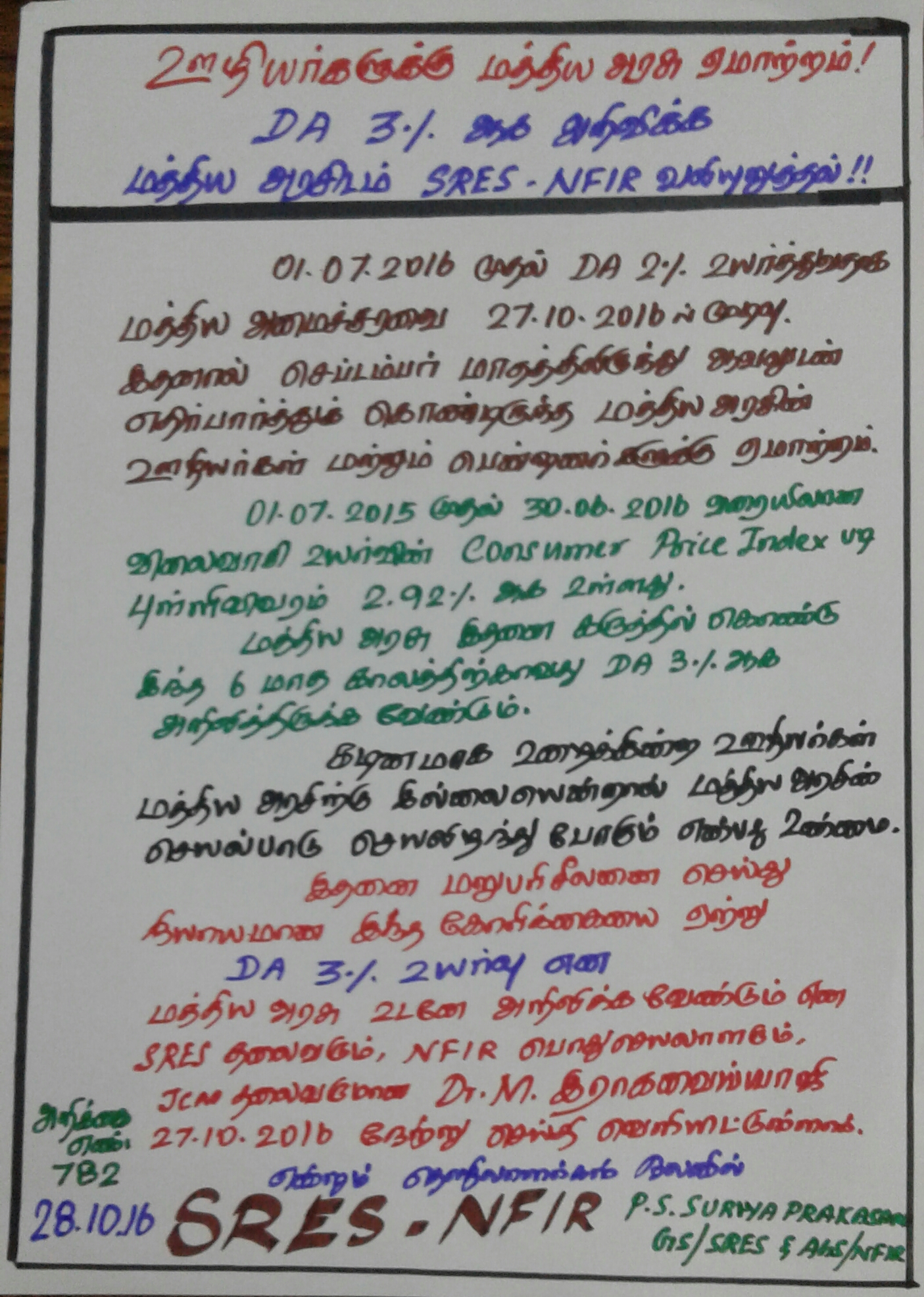 DA Arrears & Pay Nov 2016 to be paid in cash payments – Tamil. |