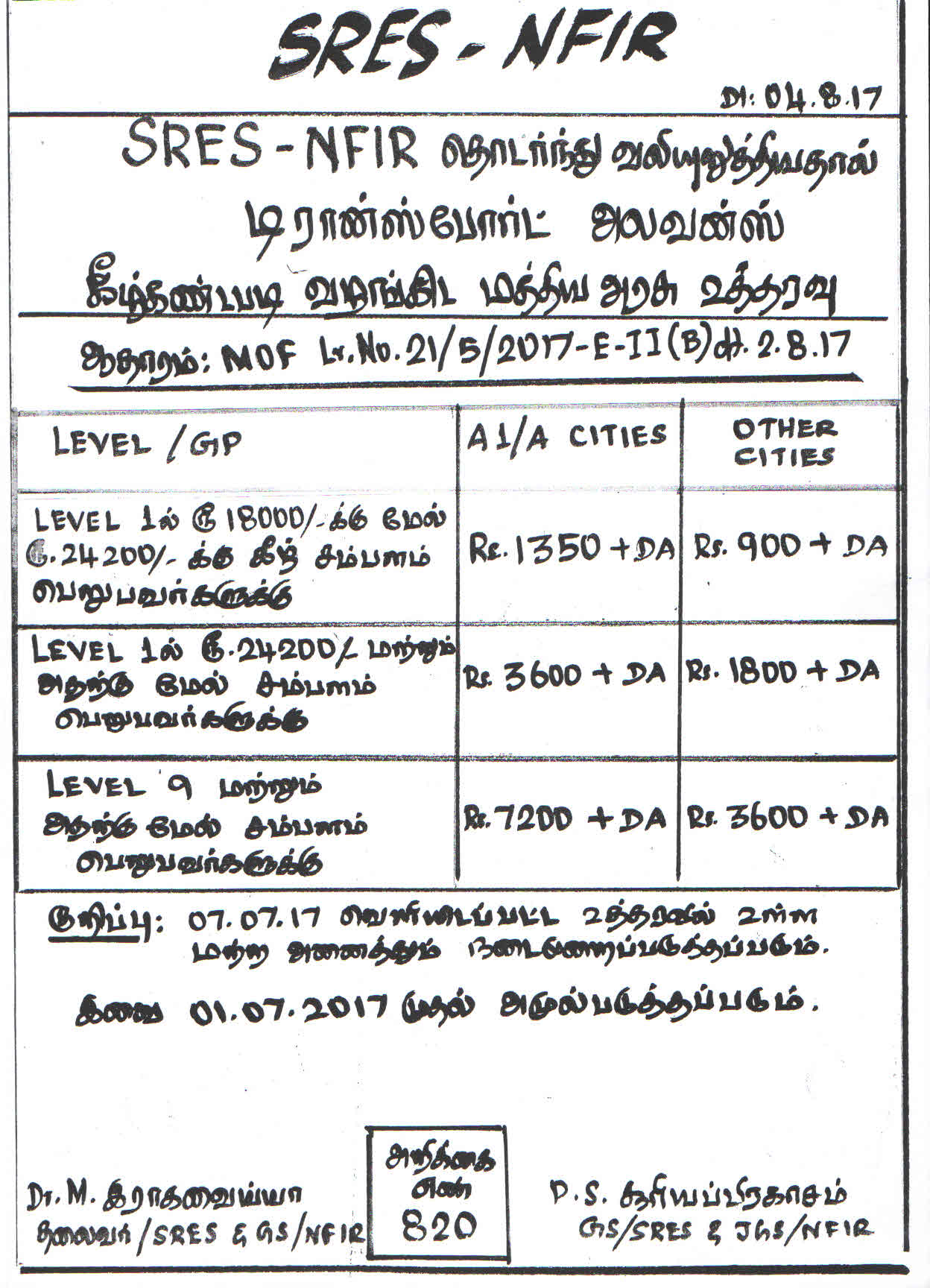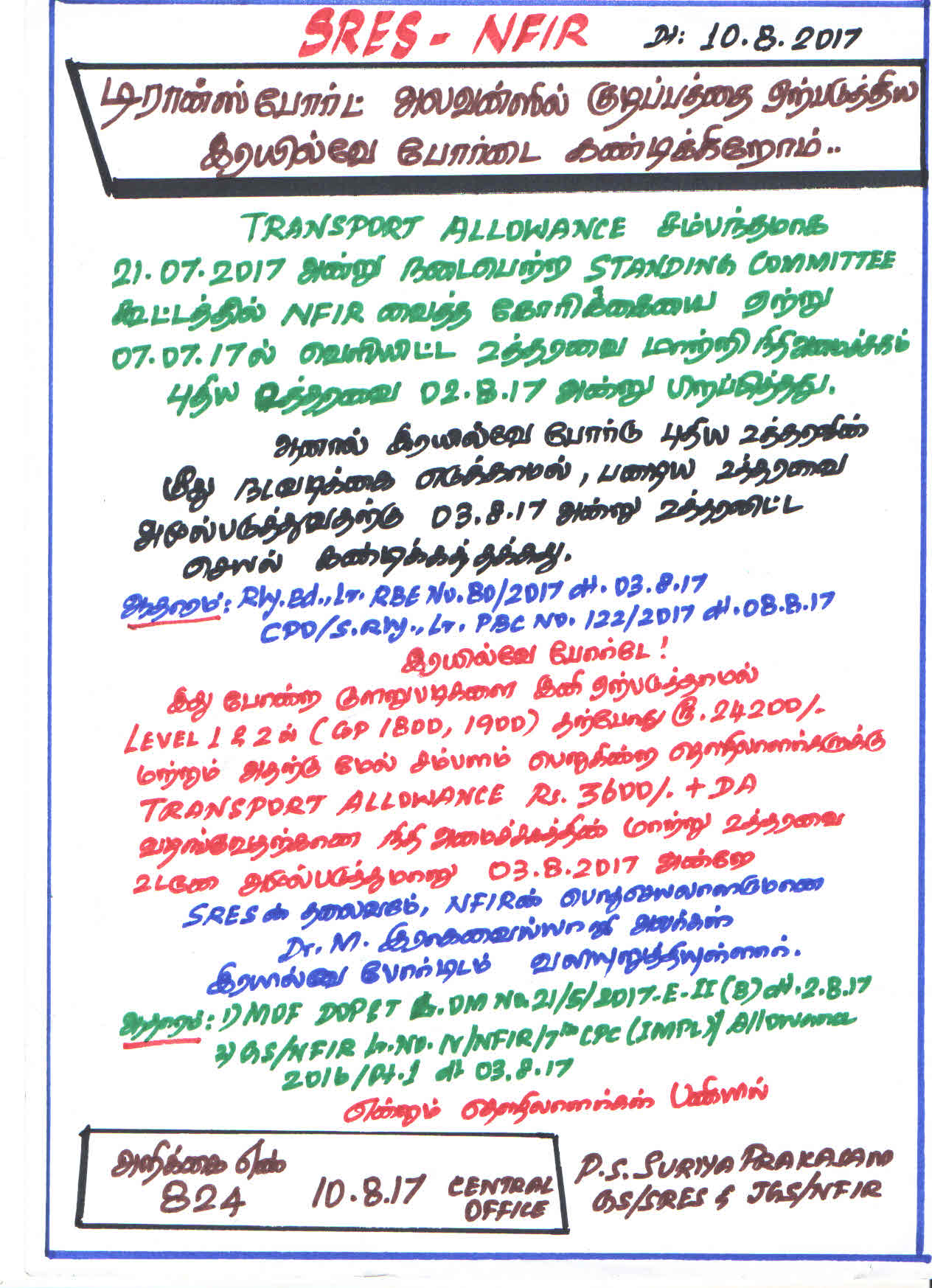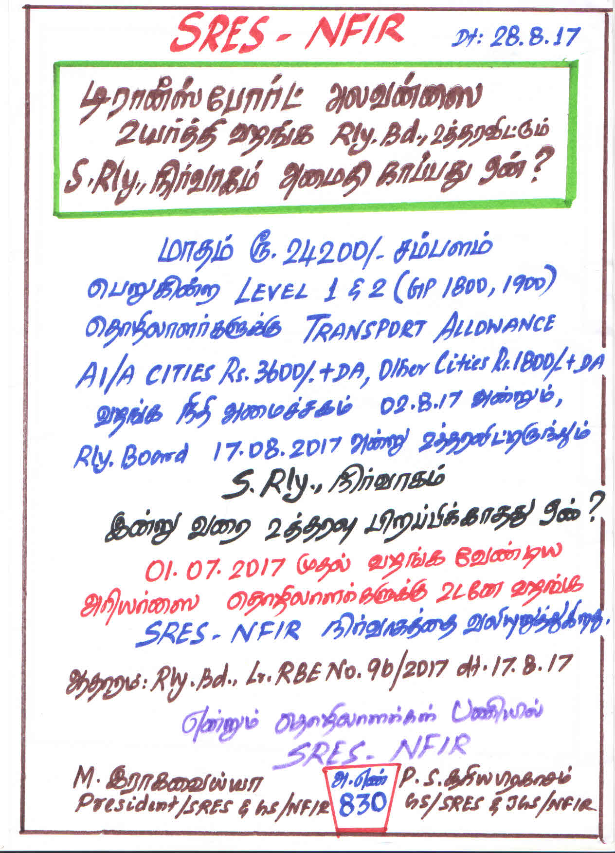 Confusion created by Rly Board for Transport Allowance – Tamil Poster |