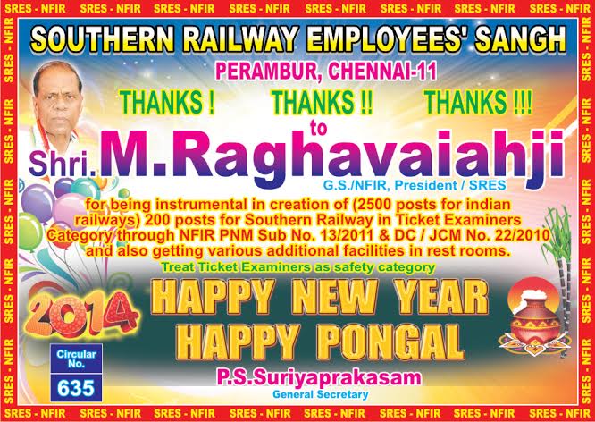 Thanks to Shri.M.Raghavaiahji for taking efforts in creation of 2500 Ticket Checking post in Indian Rlys and 200 Ticket Checking post in S.Rly |