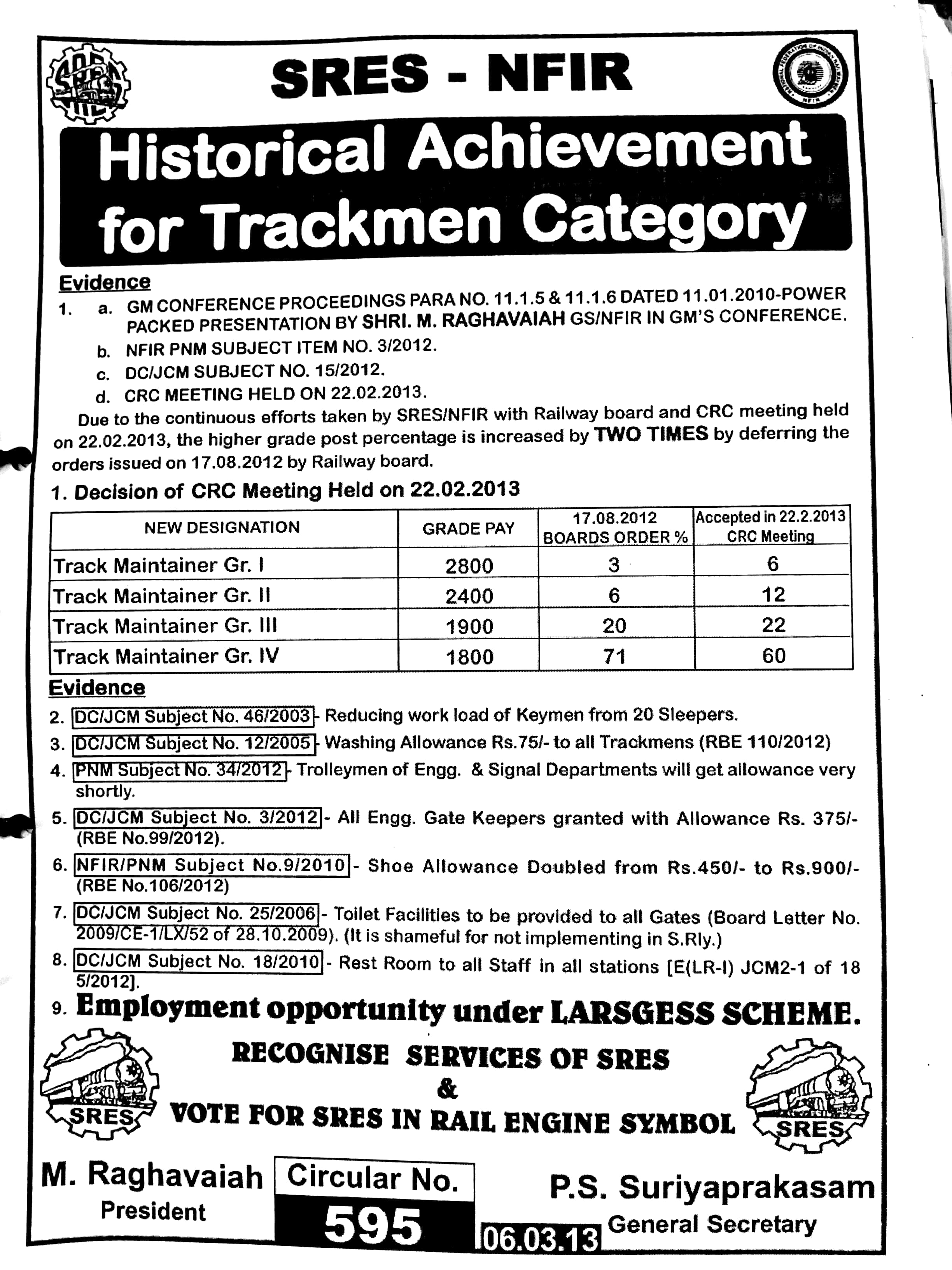 Change of Category of Track Maintainers & Risk and hardship allowance |