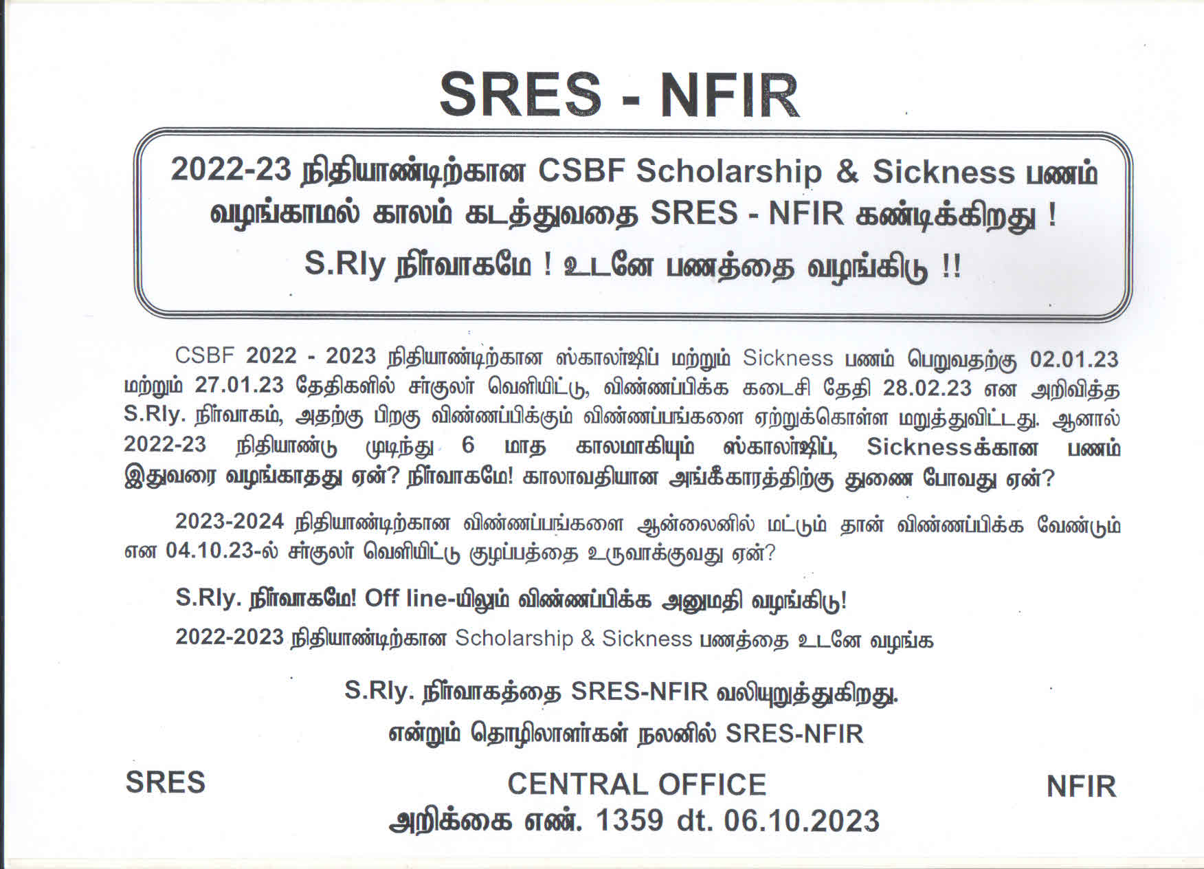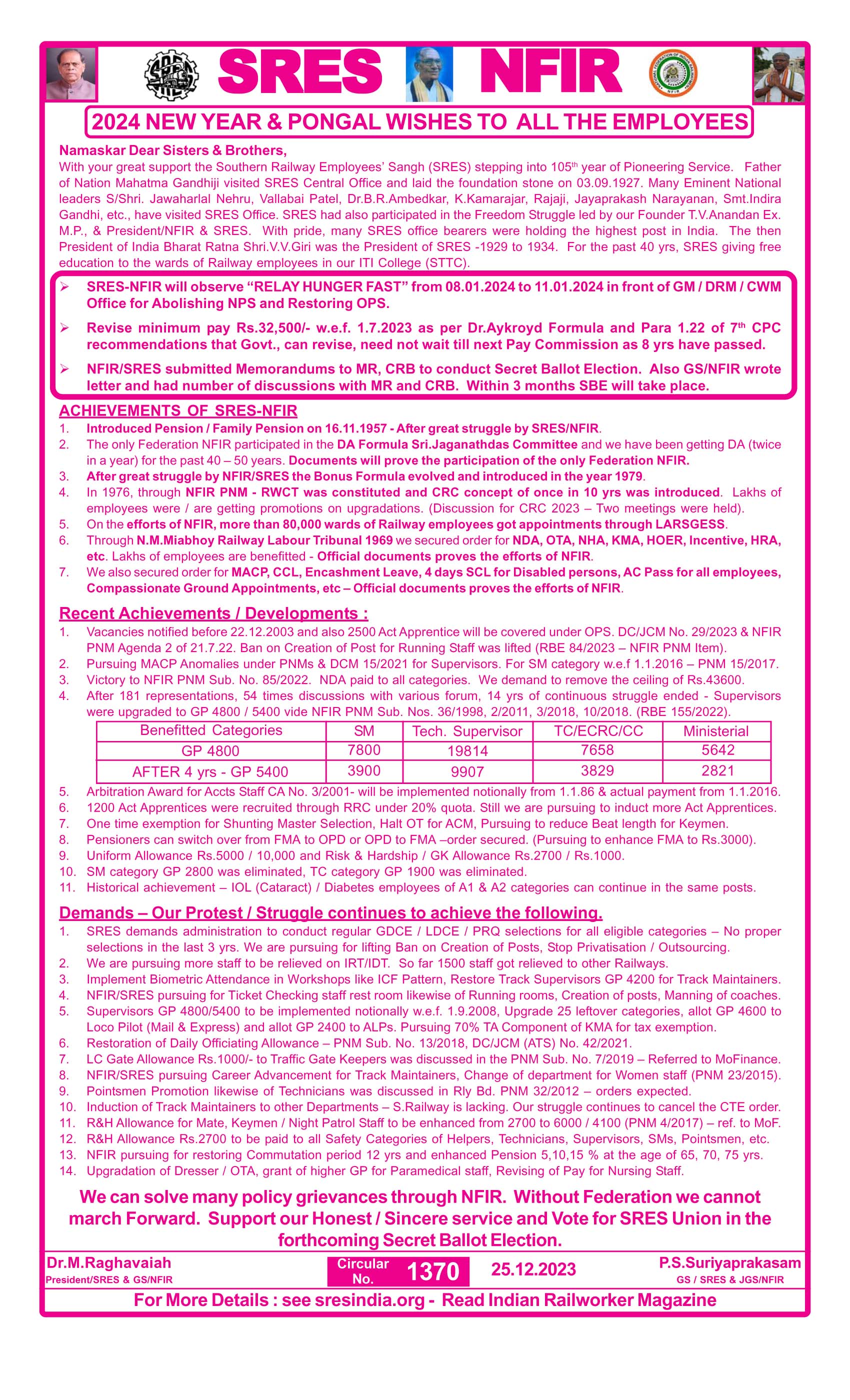 SRES presented Memorandum to Ms.V.S.Bhooma, AM HR Staff of Railway Board |